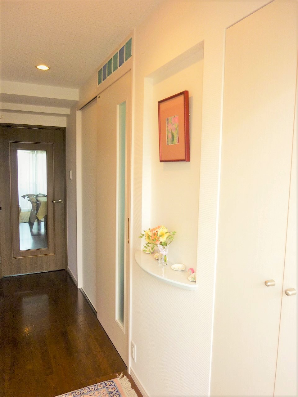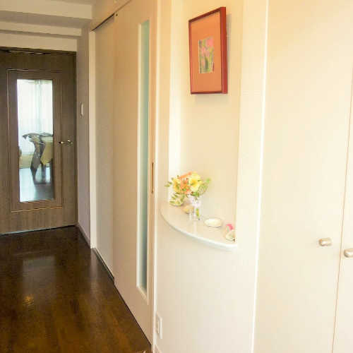 壁厚を利用して、ニッチを造作。玄関を華やかに。