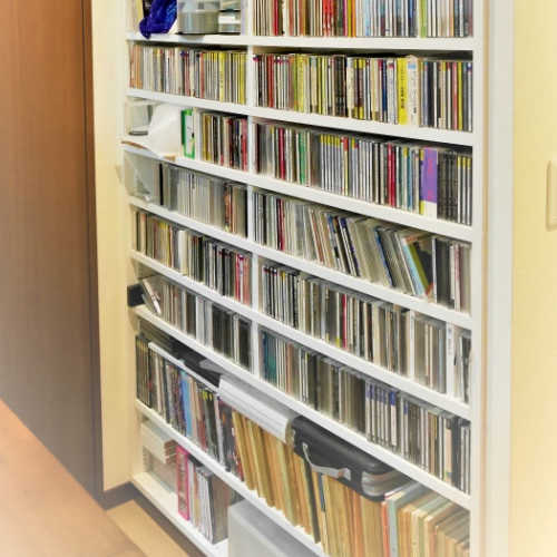 壁厚を利用し、大量のCD収納スペースに。